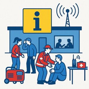 Beim Notfall-Infopunkt bekommen Sie gesicherte Informationen zur Lage aus erster Hand. Sie können sich dort auch mit anderen Menschen aus dem Dorf treffen und sich austauschen oder sich gegenseitig helfen.