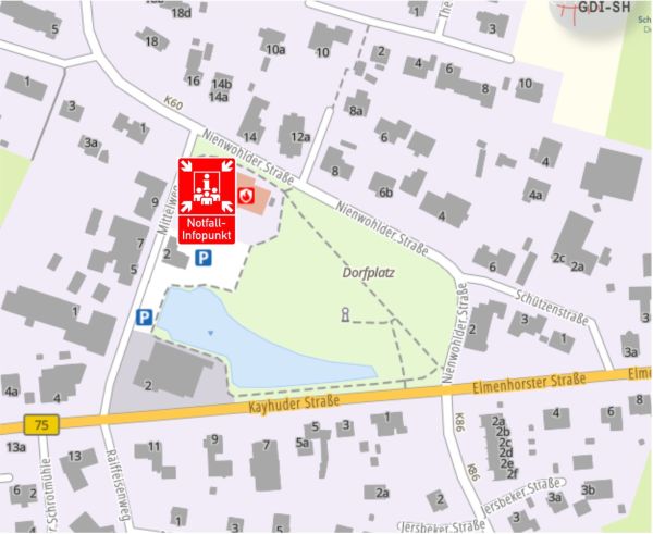 Sollten Sie Hilfe benötigen und der Notruf funktioniert nicht mehr, dann können Sie am Notfall-Infopunkt einen Notruf absetzen, der zur Katastrophenabwehrbehörde in Bad Oldesloe weitergeleitet wird, sofern unsere Feuerwehr den Notfall nicht eigenständig lösen kann. Unsere Freiwillige Feuerwehr bleibt im Dorf und nimmt die Aufgaben nach dem Brandschutzgesetz war. Außerdem unterstützt die Feuerwehr den Krisenstab beim Aufbau des Notfall-Infopunktes.