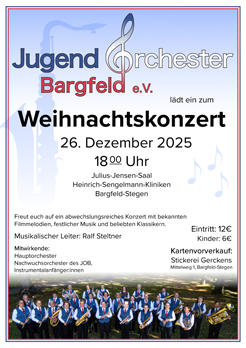 Freut euch auf ein abwechslungsreiches Konzert mit bekannten Filmmelodien, festlicher Musik und beliebten Klassikern.